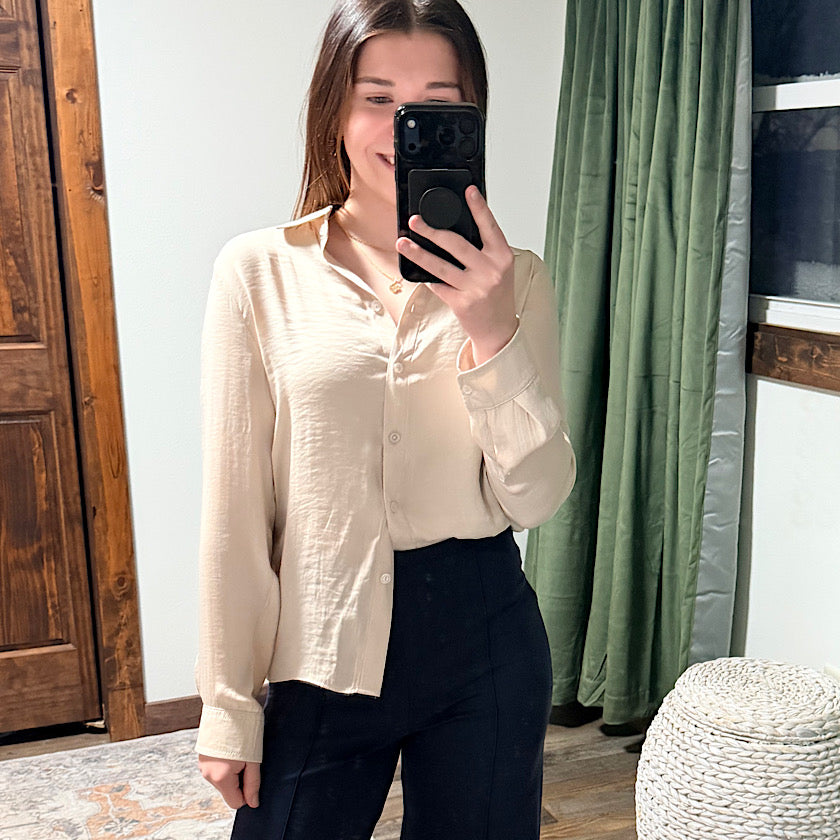 Rolled Sleeve Button Up Blouse