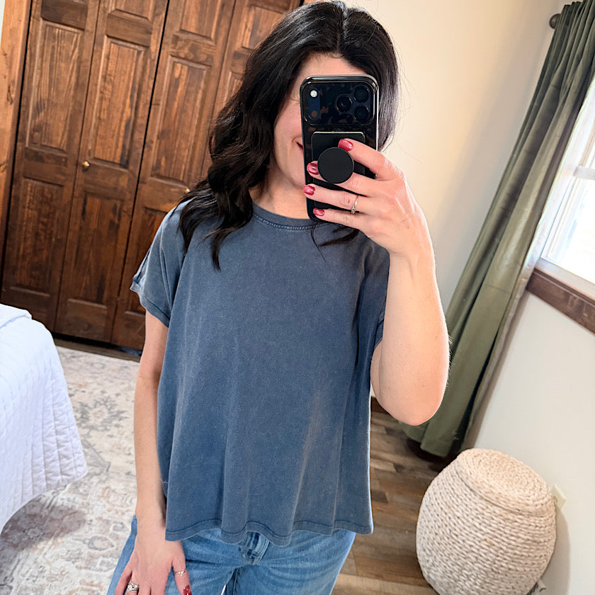Navy Capped Sleeve Mineral Wash T-Shirt
