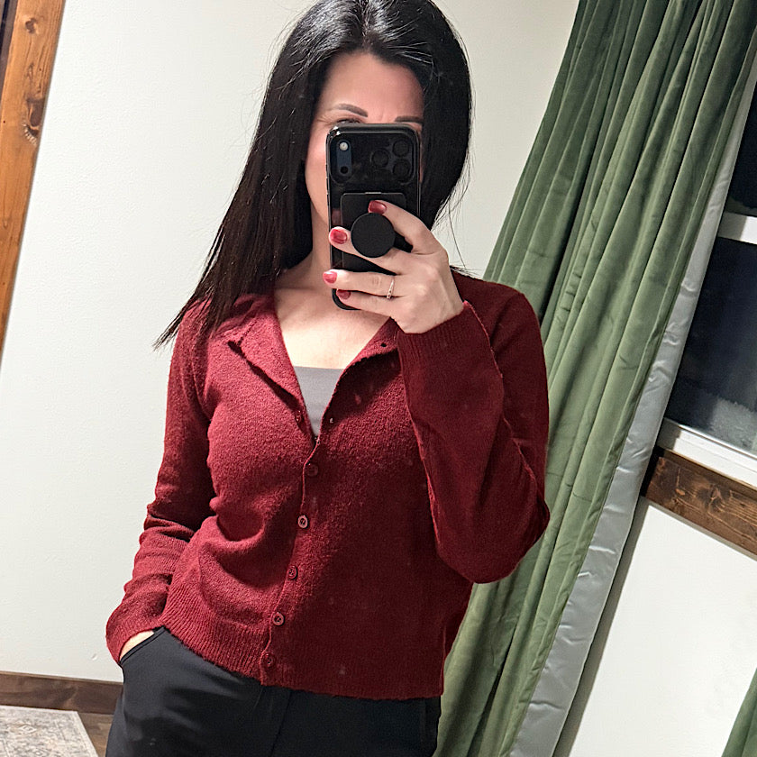 Burgundy Button Down Sleeve Cardigan